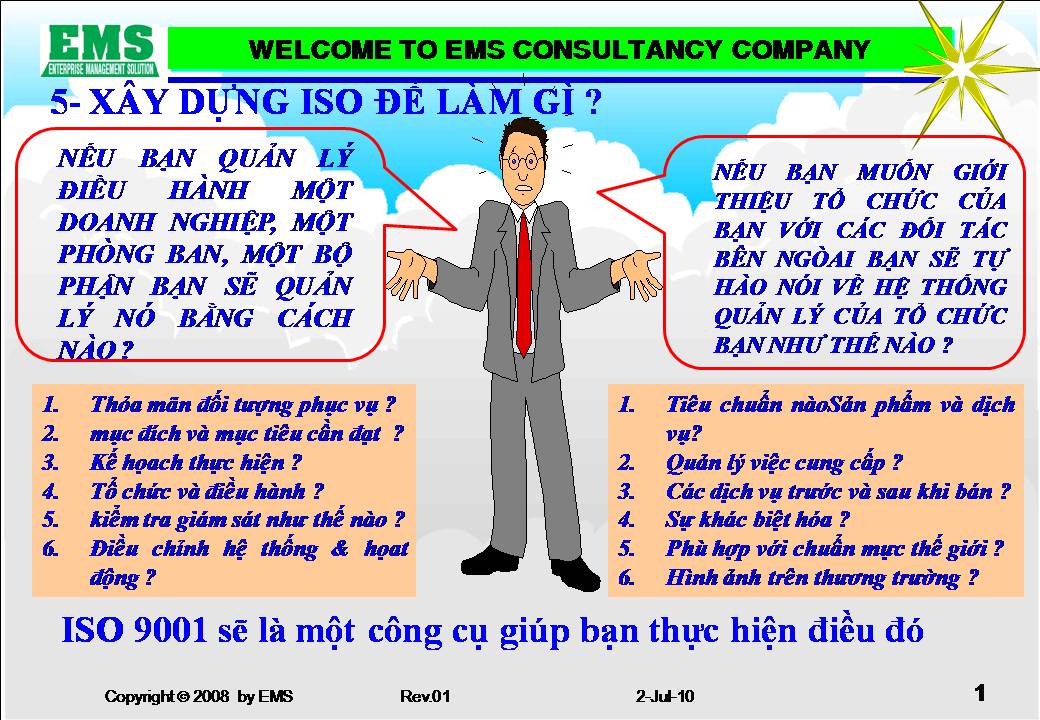 Bất kỳ một doanh nghiệp hay một tổ chức nào cũng cần phải có xây dựng một hệ thống quản lý. Dù doanh nghiệp có ISO 9001 hay các tiêu chuẩn khác hay không thì tổ chức đó vẫn tồn tại một hệ thống quản lý của mình. Vấn đề là làm sao vận hành hệ thống quản lý ấy một cách trơn tru, hiệu quả, ít đau đầu và nhà quản lý có thời gian để thực hiện các niềm đam mê khác của mình ngoài tổ chức.